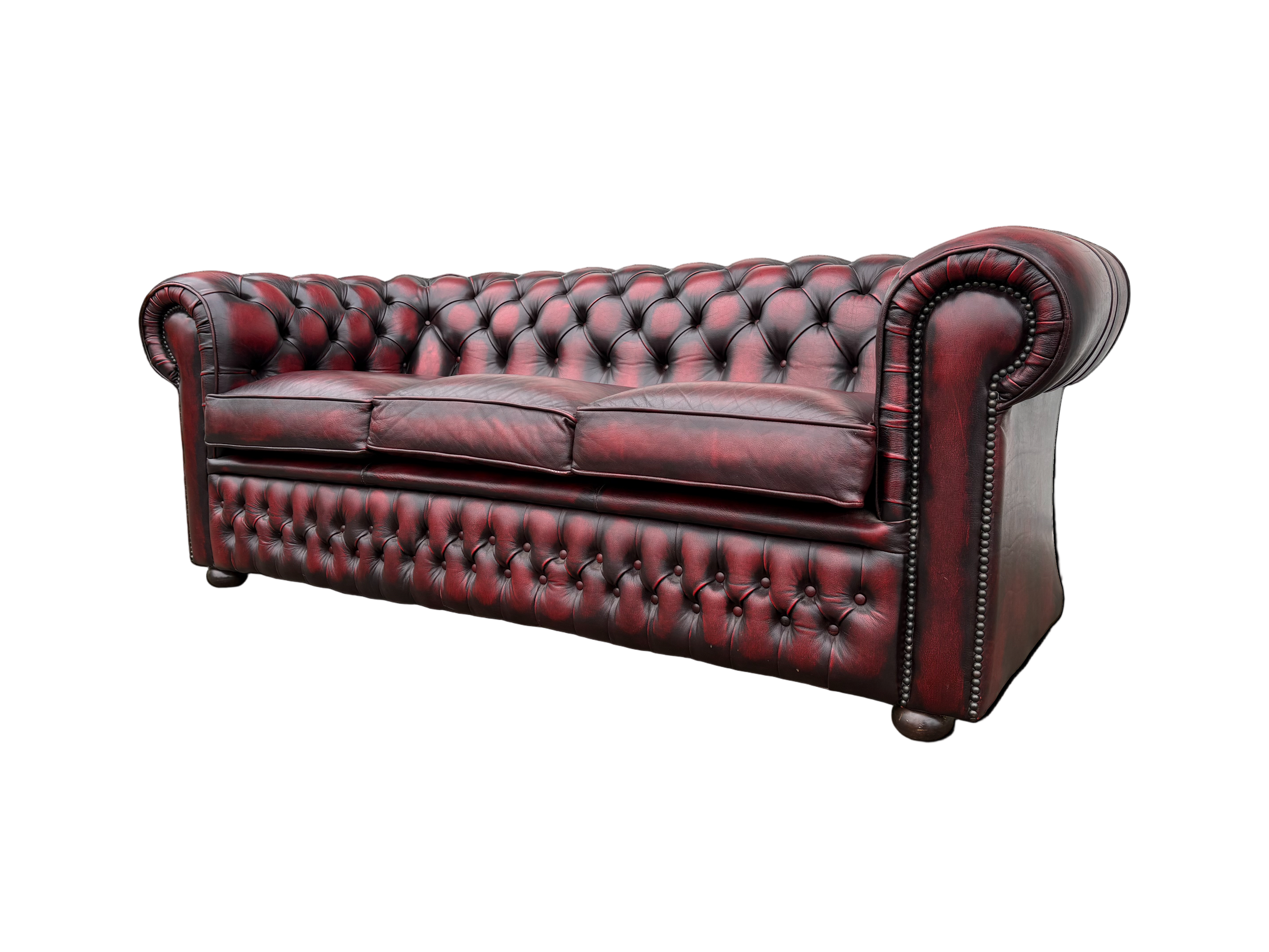Vintage Chesterfield 2-sits soffa i oxblodsfärgat läder